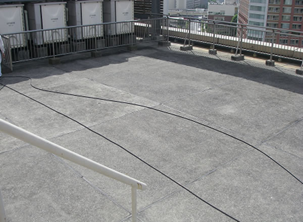上層階の暑さ対策と屋上防水層の耐久性向上に遮熱塗装が実施されました。