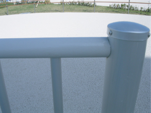 沖縄の炎天下のもと、暑くてもてなかったステンレスアルミの手すり500mにアドクールAqua EX-011を塗装。