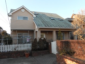 屋根劣化が激しく、地元の建築業者様に屋根の葺き替えを勧められておりましたが、私共に相談があり、まだ葺き替えの必要は無いと判断し、アドクールAquaで復元させて頂きました。(外壁部は、他社塗料)