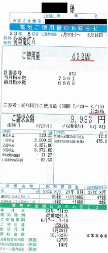 (今年)2011年7月20日~8月19日使用量 →432KW